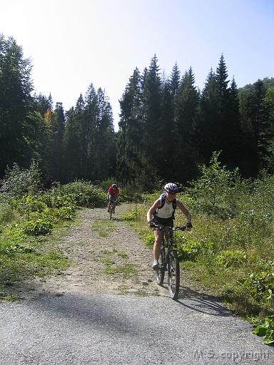 Na niebieskim walka z kamieniami. Widok na pędzących rowerzystów.