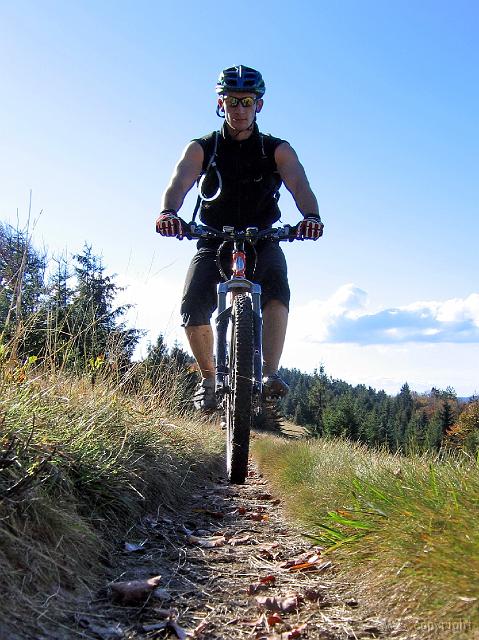 Na koniec trzeba było zarzucić maszynę na plecy i wnieść na szczyt. Tu jeszcze się przyjemnie jechało.